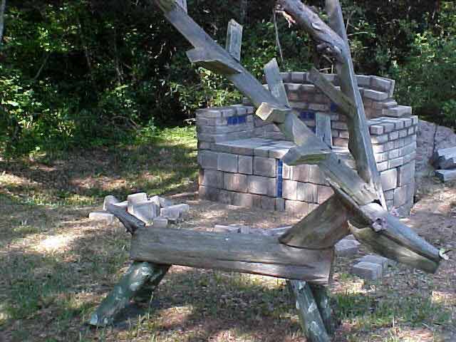 JEF Bench, Buxton, N.C. ("Critter" by Clyde Jones, wood sculptor, Bynum, NC)